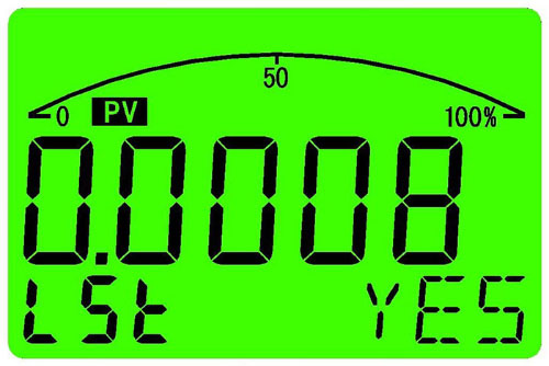 “NO” 不進(jìn)行主編清零; “YES” 進(jìn)行主編清零; “RESET” 恢復(fù)清零操作之前的零點(diǎn); 若30秒內(nèi)無(wú)任何按鍵操作,儀表將返回到測(cè)量模式。此功能禁止在生產(chǎn)過(guò)程中使用,適合在現(xiàn)場(chǎng)使用。 4.3.2零點(diǎn)有源遷移 零點(diǎn)有源遷移是將當(dāng)前壓力設(shè)定為變送器的零點(diǎn)輸出,對(duì)變送器施加零點(diǎn)壓力,長(zhǎng)按“Z”鍵5秒以上,儀表將交替顯示當(dāng)前壓力值與零點(diǎn)輸出電流值,如右圖,菜單區(qū)顯示“LSt”,通過(guò)“S”鍵和“Z”鍵選擇需要進(jìn)行的操作,提示符區(qū)相應(yīng)顯示: