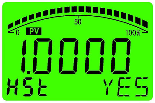 “NO” 不進(jìn)行零點(diǎn)有源遷移; “YES” 進(jìn)行零點(diǎn)有源遷移; 若30秒內(nèi)無(wú)任何按鍵操作,儀表將返回到測(cè)量模式。此功能禁止在生產(chǎn)過(guò)程中使用,適合在現(xiàn)場(chǎng)使用。 4.3.3滿點(diǎn)有源遷移 滿點(diǎn)有源遷移是將當(dāng)前壓力設(shè)定為變送器的滿點(diǎn)輸出,對(duì)變送器施加滿點(diǎn)壓力,長(zhǎng)按“S”鍵5秒以上,儀表將交替顯示當(dāng)前壓力值與滿點(diǎn)輸出電流值,如右圖,菜單區(qū)顯示“HSt”,通過(guò)“S”鍵和“Z”鍵選擇需要進(jìn)行的操作,提示符區(qū)相應(yīng)顯示: