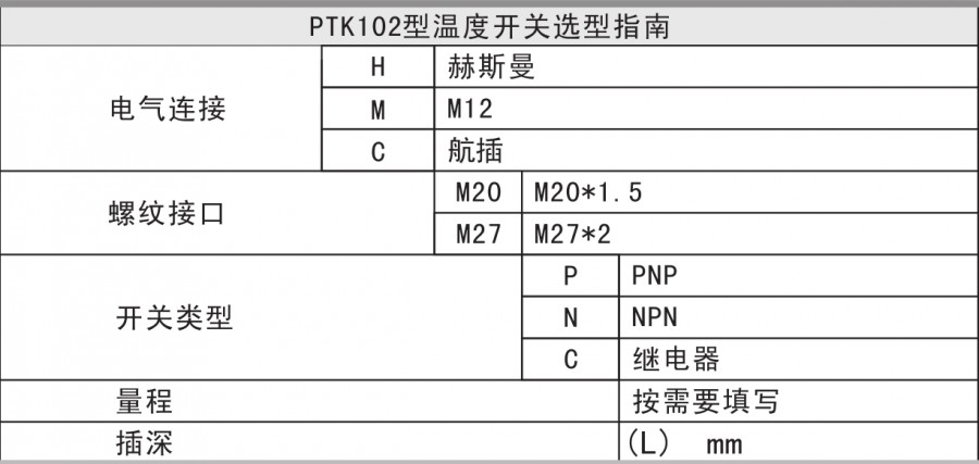 PTK102智能數(shù)字溫度開(kāi)關(guān)是集溫度測(cè)量、顯示、輸出、控制于一體的智能數(shù)字溫度測(cè)控產(chǎn)品。不銹鋼接頭、高精度PT100、全數(shù)字電路板組成,顯示直觀,操作簡(jiǎn)單,安全可靠,開(kāi)關(guān)點(diǎn)現(xiàn)場(chǎng)設(shè)置。廣泛應(yīng)用于水電、自來(lái)水,石油、化工、機(jī)械、液壓等行業(yè),對(duì)流體介質(zhì)的溫度進(jìn)行測(cè)量和控制。